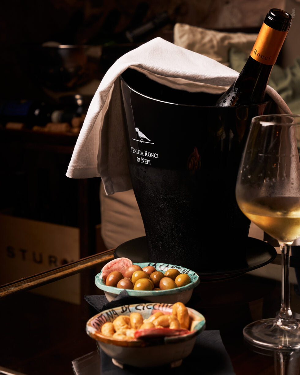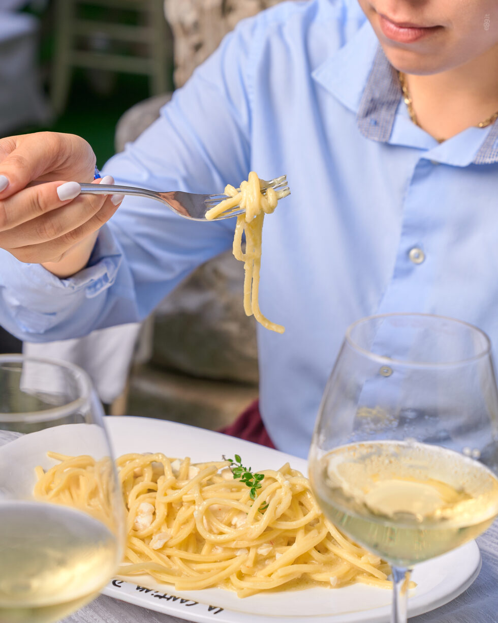 Con un servizio fotografico ad hoc abbiamo immortalato la storia del ristorante, le mura antiche, il frantoio e la cisterna, ma anche il presente con le bottiglie selezionate e i piatti della tradizione gaetana che la giovane proprietaria tiene a tramandare.