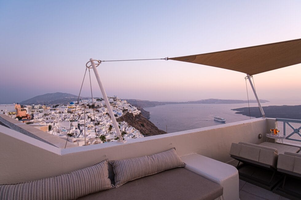 Una di queste è Blue Dolphins, sito di prenotazioni online che raccoglie alcune delle più belle strutture di lusso di Santorini.